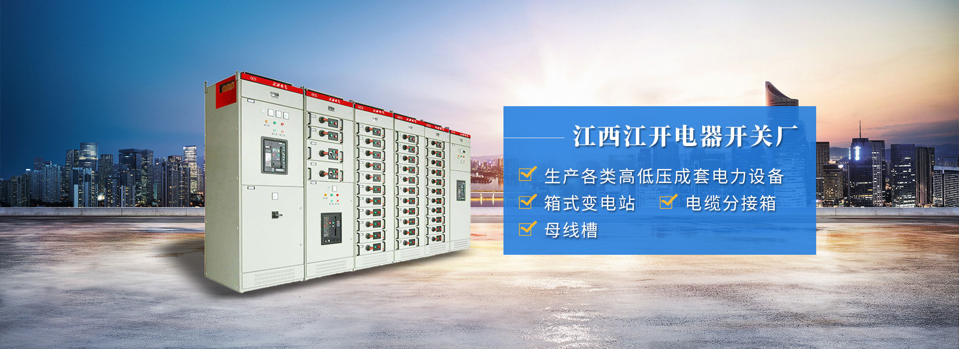 江西江開電器開關廠是一家集產(chǎn)品設計、生產(chǎn)、銷售、服務于一體的輸配電企業(yè)。公司生產(chǎn)各類高低壓成套電力設備,箱式變電站,電纜分接箱,母線槽; 公司擁有齊全的生產(chǎn)設備和檢測設備,建立了質(zhì)保體系和統(tǒng)一的檢測隊......